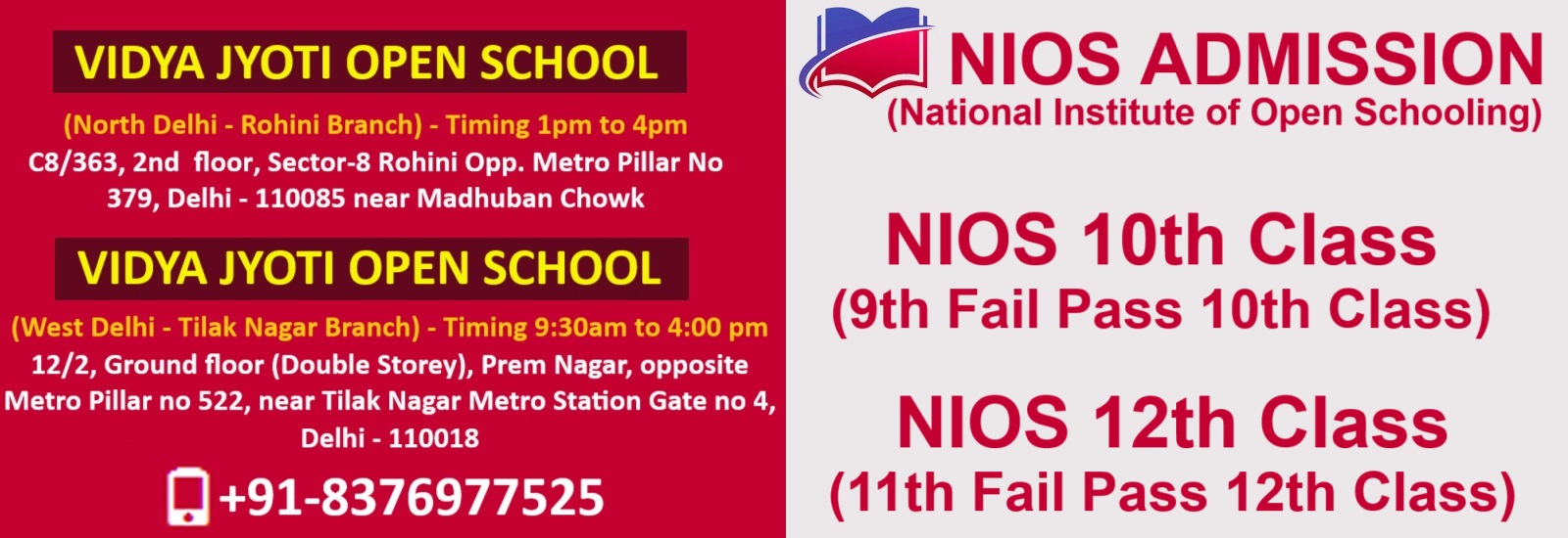 Thanks for saving my one year. After got failed in 11th I was depressed but because of your help I could do 12th directly from NIOS Thank you Vidya Jyoti Open School team.